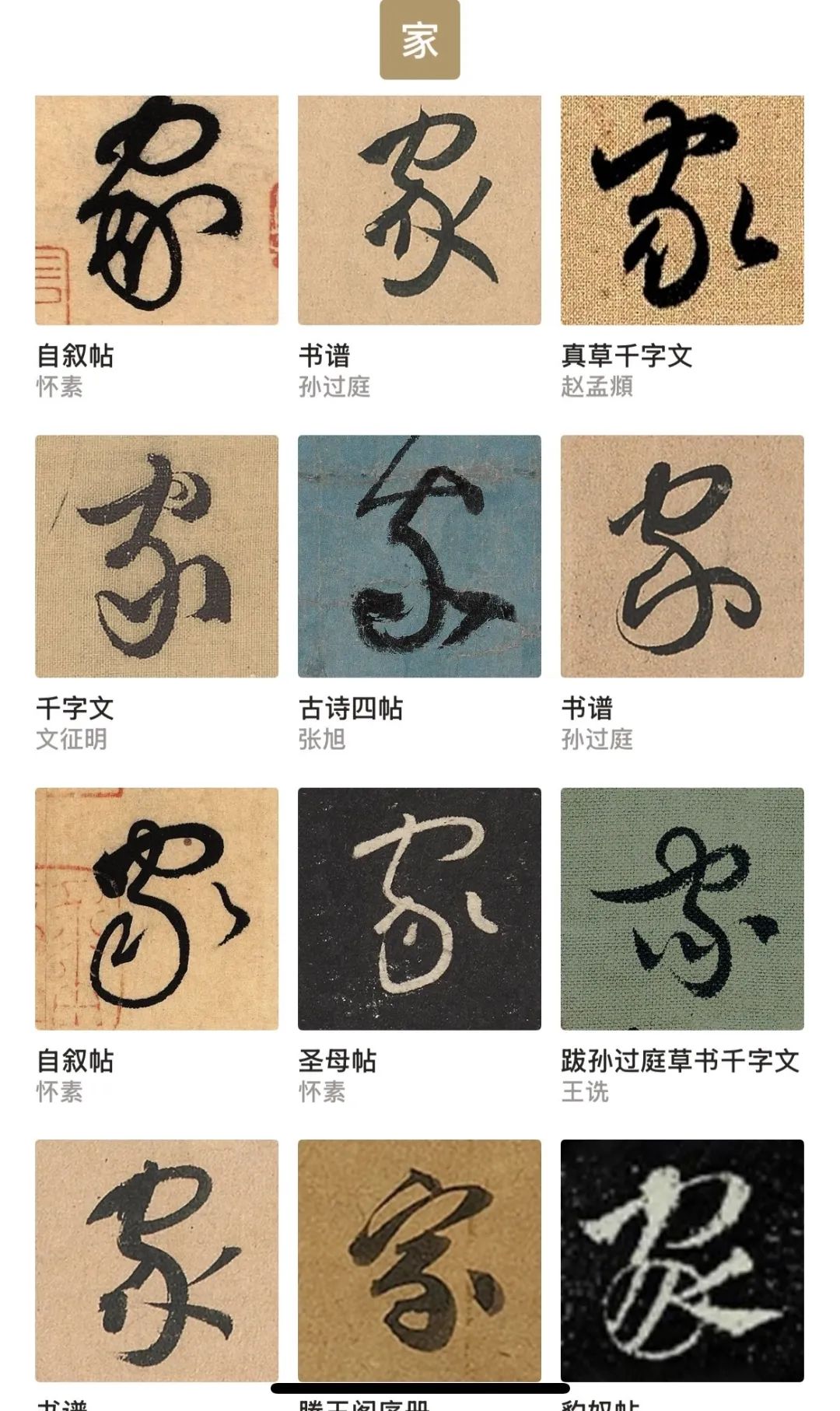 部分草书“家”字的写法。