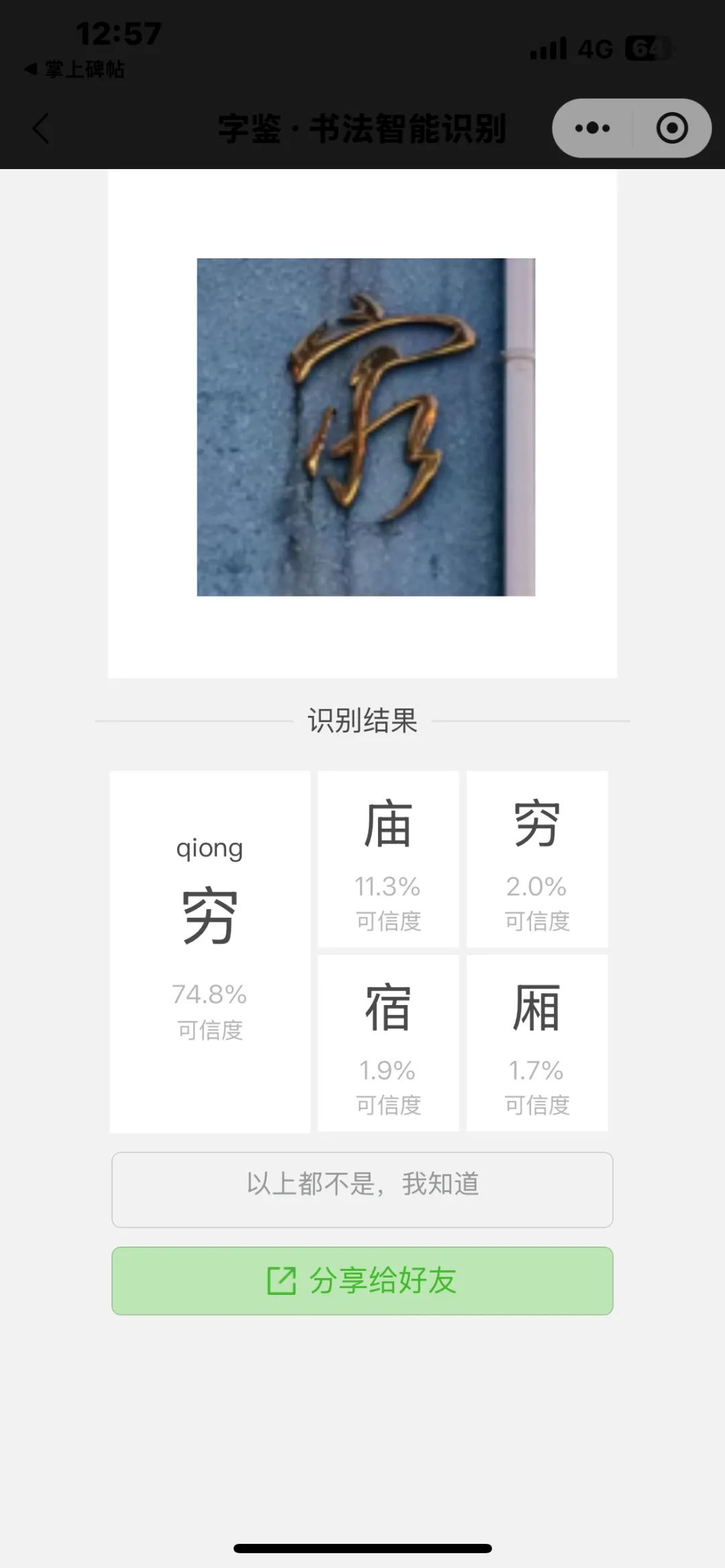 软件识别该字为“穷”的可能性较大。