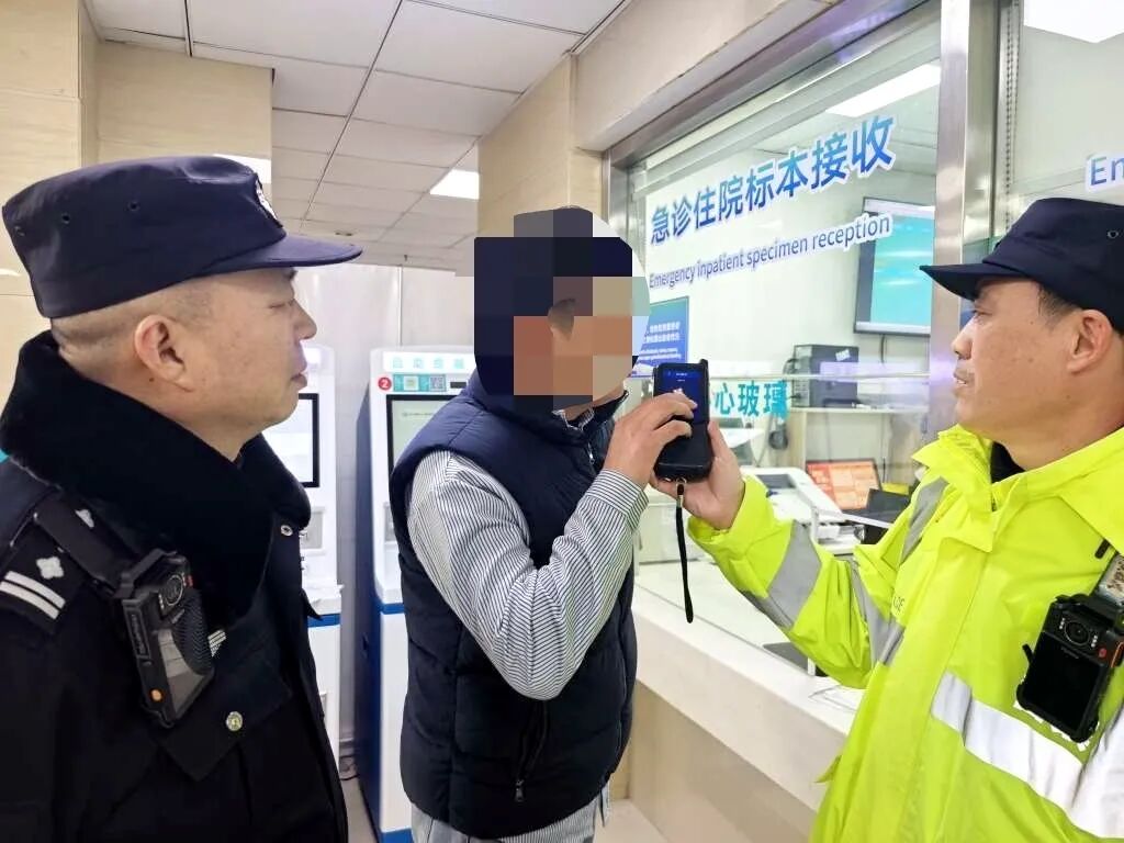 交警将嫌疑人带往医院血检。