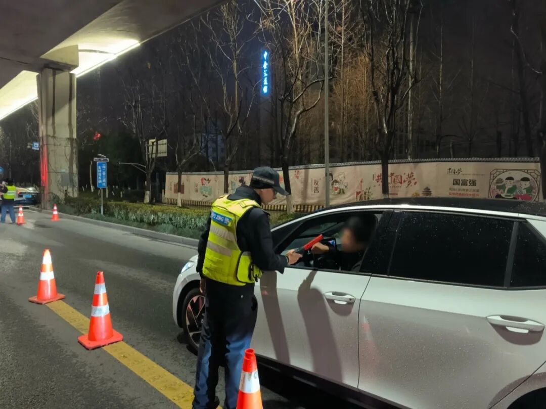 海曙交警除夕夜设卡查酒驾。