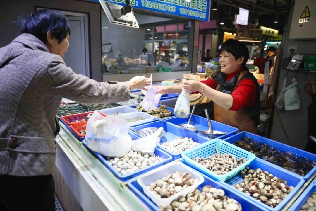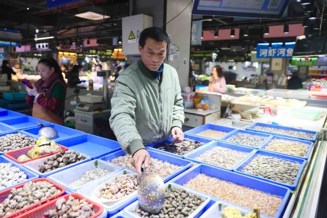 俗话说“清明螺,赛肥鹅”。今天上午,记者走进江北区广厦菜场,只见螺蛳、蛏子等时令水产纷纷上市,肉质肥美、新鲜诱人,引得不少市民前来选购,市场里一派热闹的春日烟火气。
