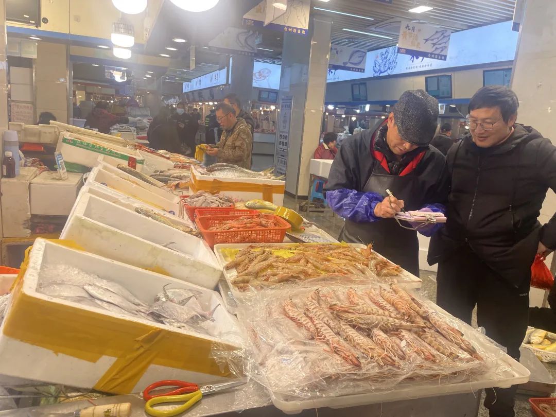 “自进入春节销售以来,我们市场一个摊位平均销售额四五万元都有的。”金建国介绍,这段时间,市场日均交易量三四百吨、营业额达400万元。市场内冻品海鲜供应量充足,基本能满足消费者餐桌需求。