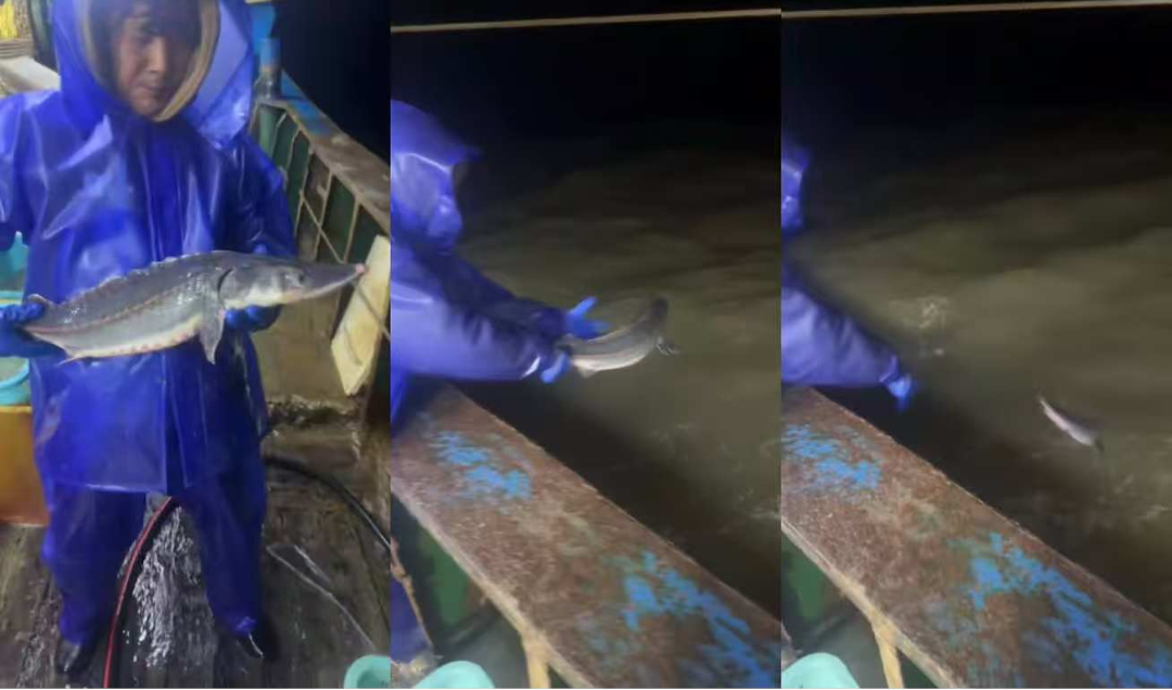 而这样的暖心举动,在椒江早已不是个例。2023年2月,渔民曹俊富在大陈岛海域作业时就误捕过两条野生中华鲟,也第一时间就地放生。椒江渔民一次次用实际行动,守护着这片海域的珍稀水生生物。