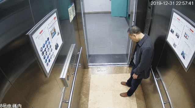 22:57:41,电梯到达负一楼,而此时杨医生已经站着睡着。