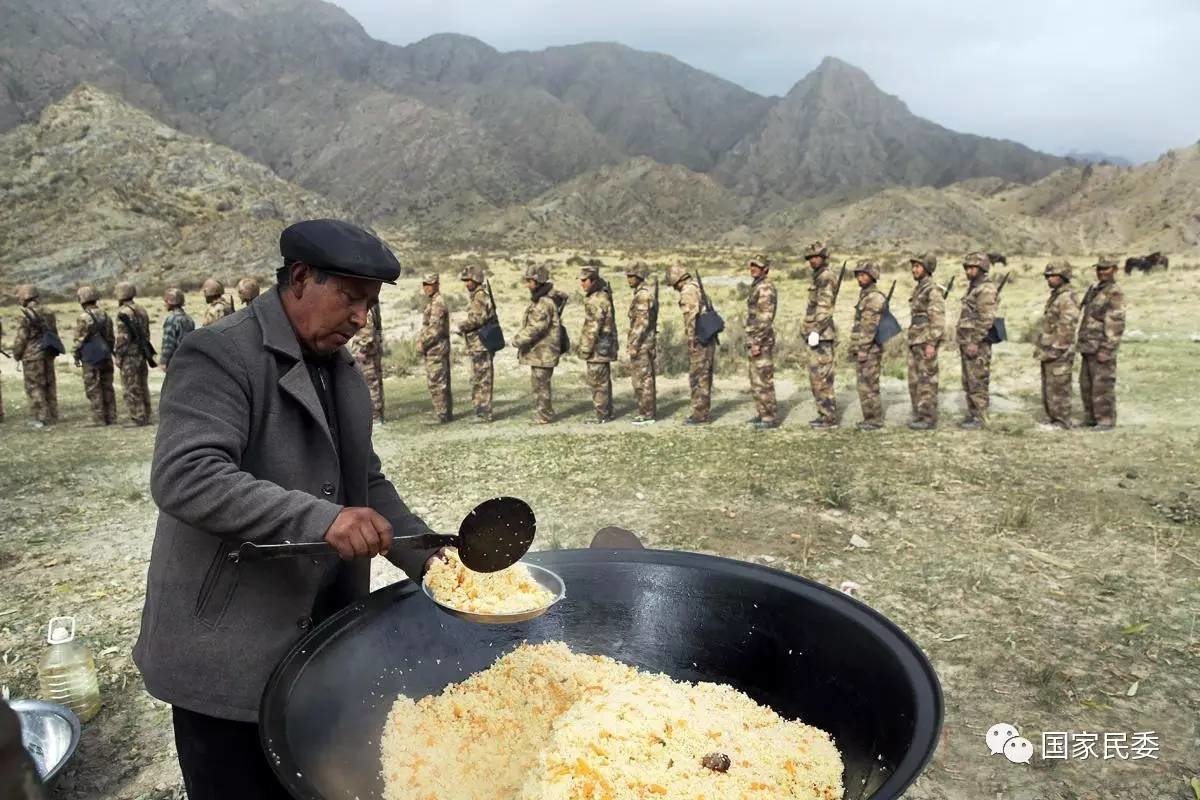 乡亲们为骑兵连战士们做了手抓饭。