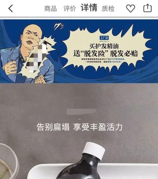 近日,记者在购物平台上发现,一款洗发水的广告宣传中写到——“买护发精油送‘脱发险’,脱发必赔”。