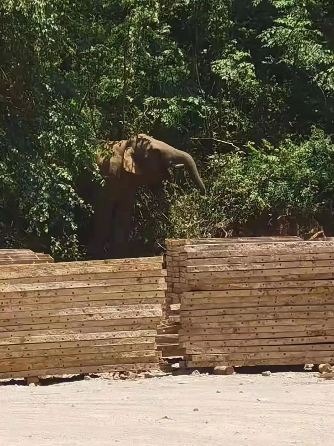汤文德说,保不齐大象们今晚就住村里了,要是它们住下,村民们就搬到二楼三楼住去。