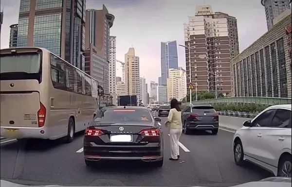 事发上海中环!SUV突然急停,一男一女做出危险举动,差点出事