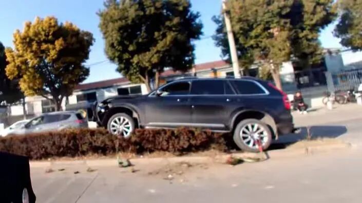 结果撞上路边栏杆