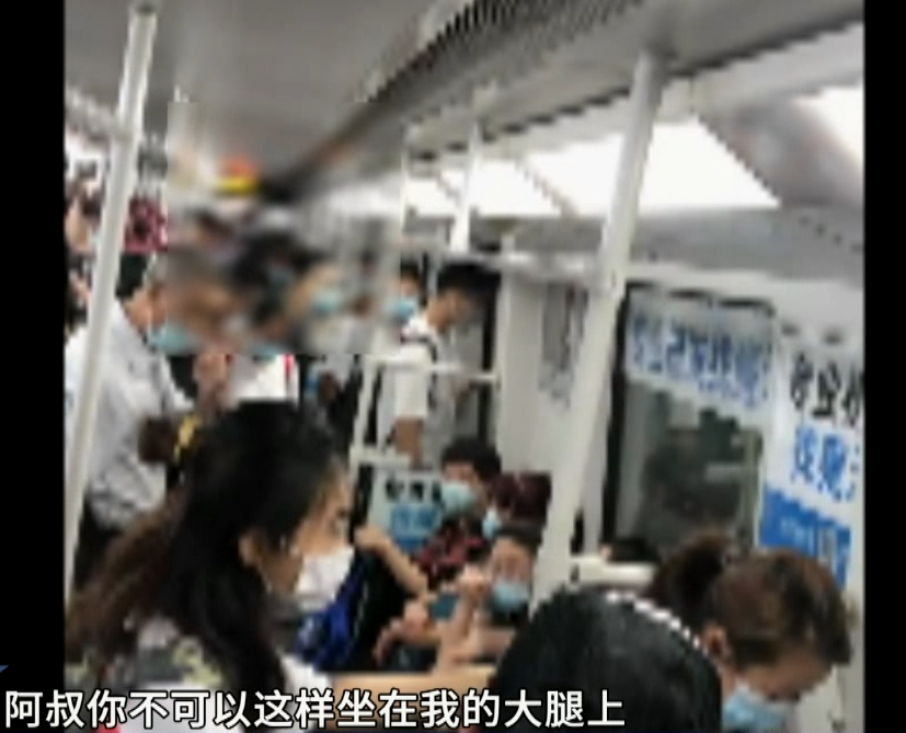 早高峰地铁内无人让座,老伯直接坐女乘客腿上