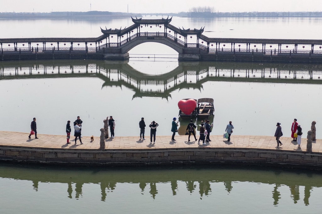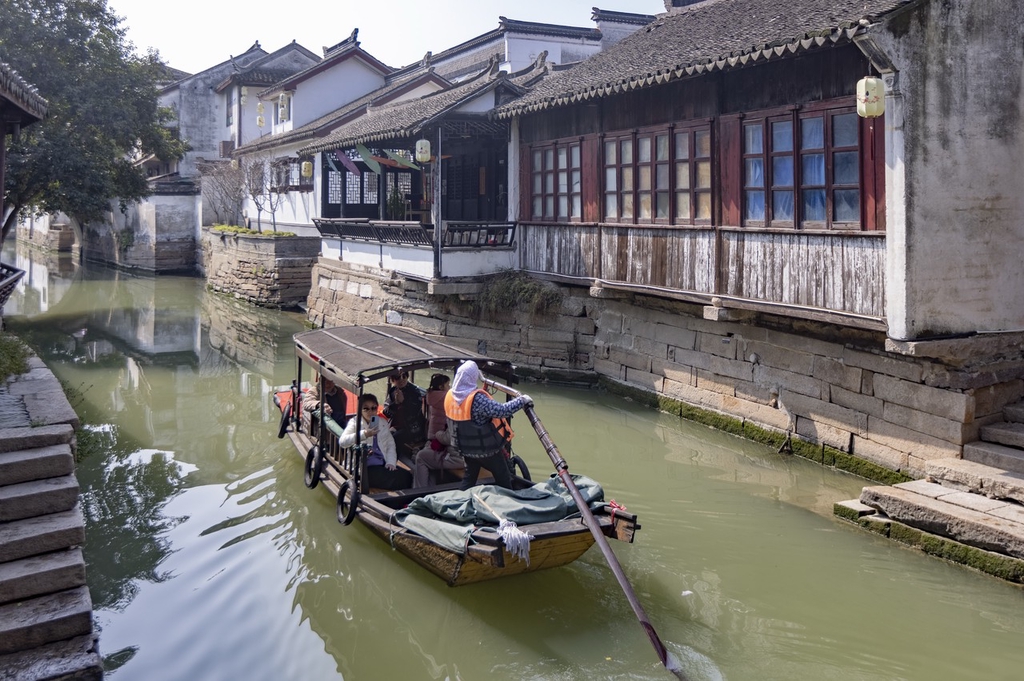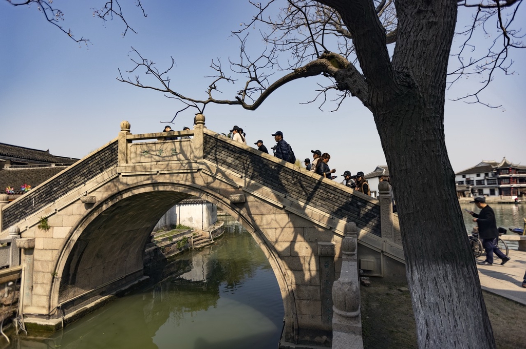 2023年3月4日,江苏省苏州市,游客在位于昆山市西南的锦溪古镇内游览。锦溪古镇有着2500多年的悠久历史,卵石小巷、明清楼堂、白墙黛瓦……完整保持了“小桥、流水、人家”的江南水乡风貌。近年来,锦溪镇始终坚持把古镇保护性发展作为重要工作来谋划,在原汁原味保留古镇风貌、韵味、肌理的同时,不断推进古镇有机更新和精细管理,让千年古镇更好地焕发历史魅力和时代新颜。 中新社记者 泱波 摄