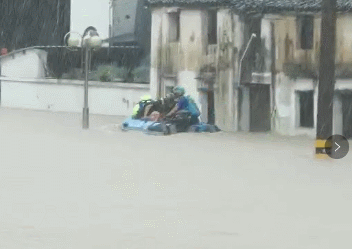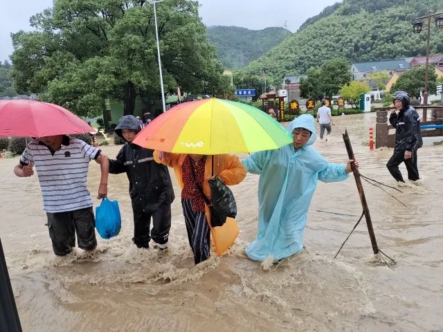 杭州一区红色暴雨预警,山洪冲入村内,积水最深时30公分!记者采访途中载出多名被困群众
