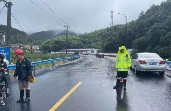 萧山交警临浦中队民警何佳介绍,今天降雨量集中在萧山南片,加上山上下来的水比较急,有部分道路被淹没了。“吉山村今天早上比较严重,早上是阵雨,有一会雨很大。”他说,“现在你们看到的视频村道被淹,那个地方是山路,旁边小河,连续有弯的,导致水被拱起来了。”