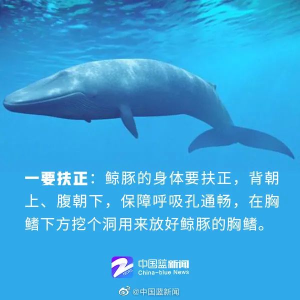 正确的处理方法是拨打救助热线,尽可能提供一些有价值的信息,包括是否死亡、腐烂程度、体长、体色、搁浅地点的地形等。在救助人员来临前或协助救助人员救助的过程中,要遵守“三要”原则: