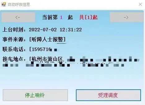 此时,萧山区120指挥中心的调度台同步收到“注意有一键呼救信息,请及时处理”的持续语音提示和文字弹框信息,调度员立即响应受理,根据呼救信息迅速调派救护车。