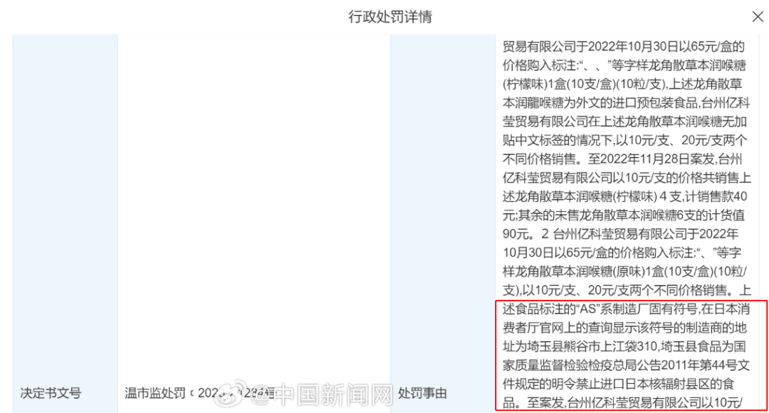 浙江一公司售卖日本核辐射区润喉糖被罚1.7万元