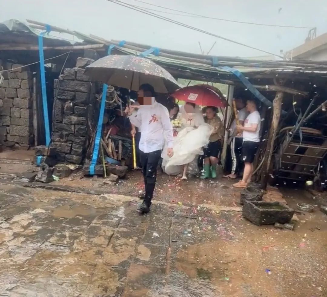雷州市覃斗镇流沙村,一场婚礼在风雨中仍然如期举办,引发网友关注,有网友表示“新郎新娘的爱情风雨无阻”。