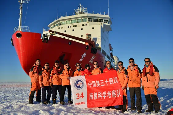 中国第三十四次南极科学考察队合影。