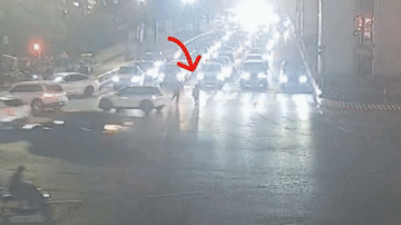 当时,右转车道车辆仍在通行,非机动车道上电瓶车来回穿梭,路口环境十分复杂,而男孩却在路口中央慢慢走着。短短几秒后,人行横道的绿灯即将结束,直行车辆也准备起步,而他却丝毫没有意识到周围的危险。