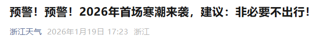 刚刚,浙江天气发布提醒