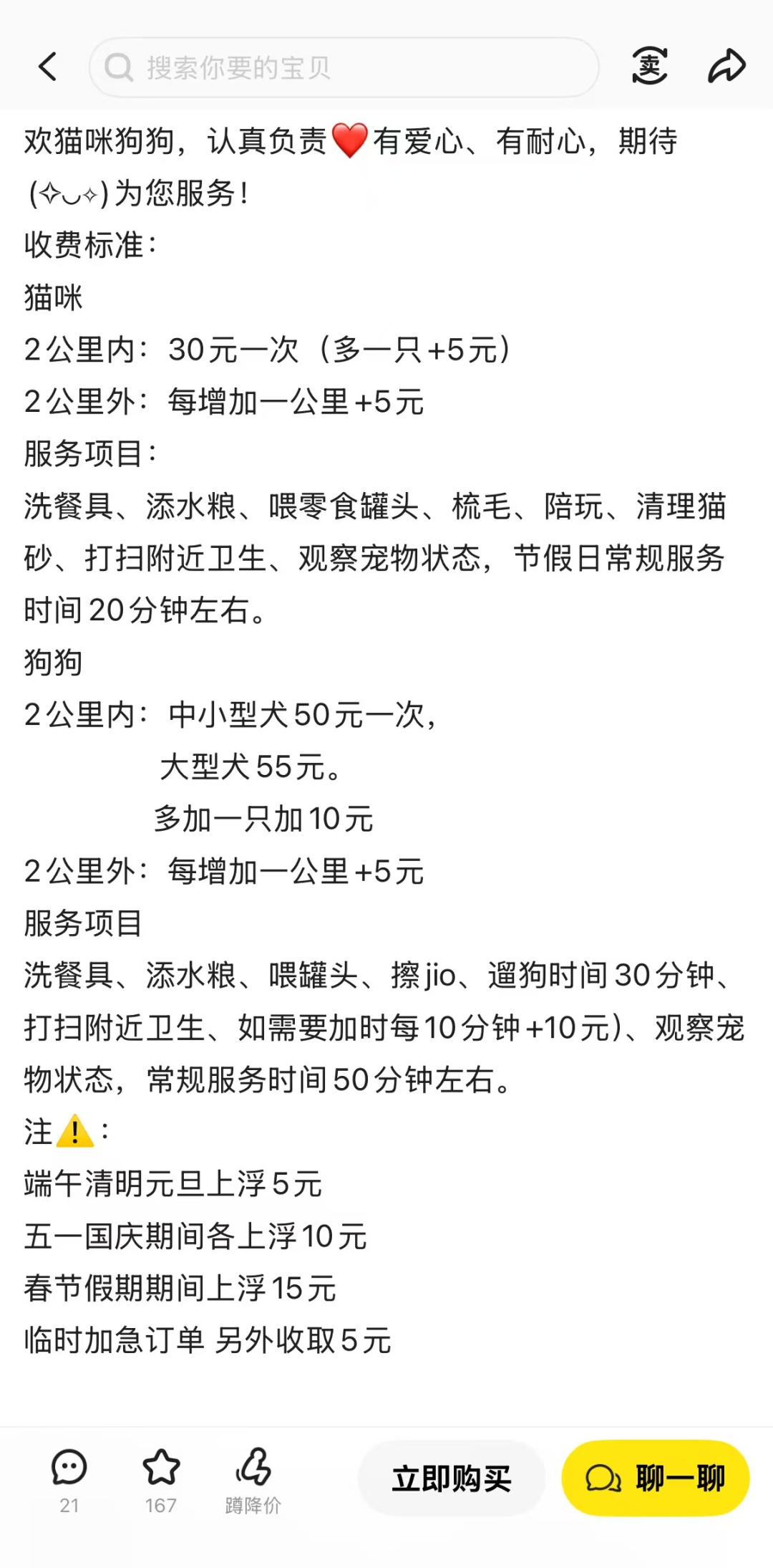 宠物上门喂养价格普遍上涨30%