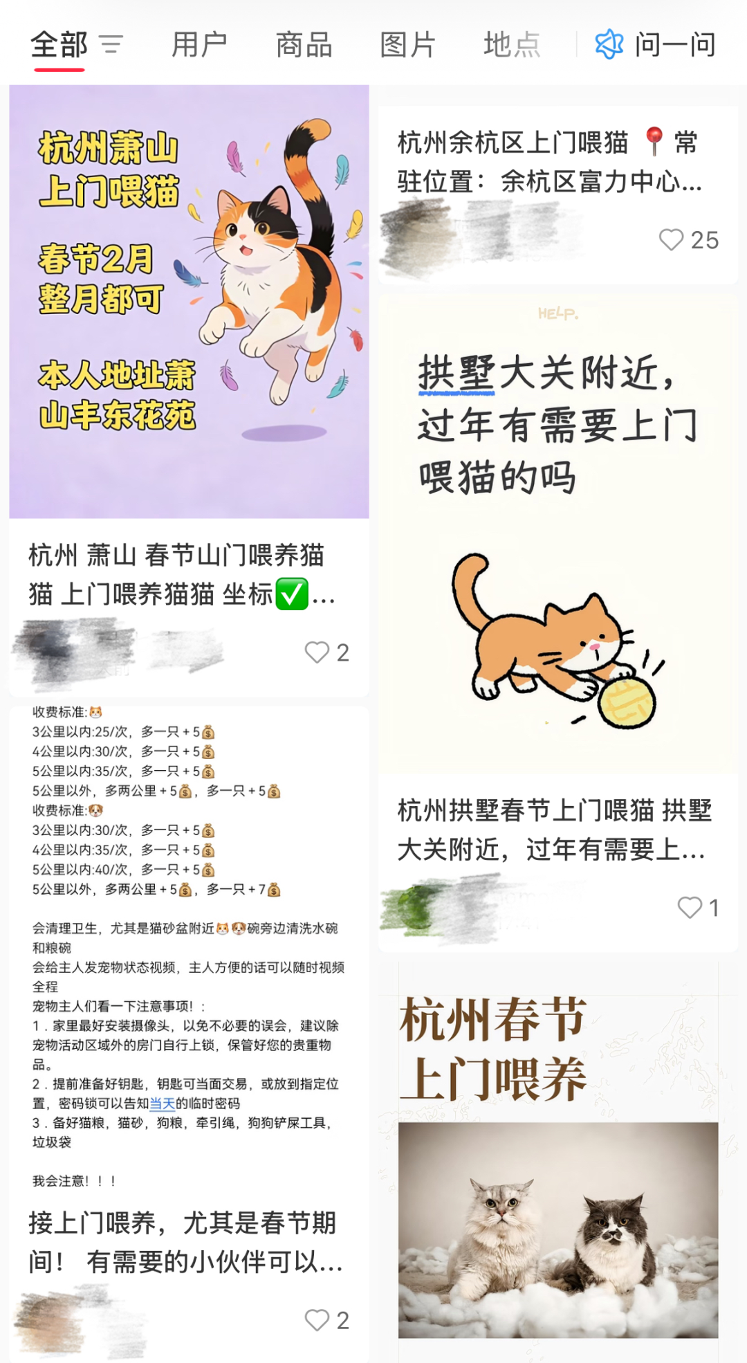 某平台“杭州上门喂养”搜索页面
