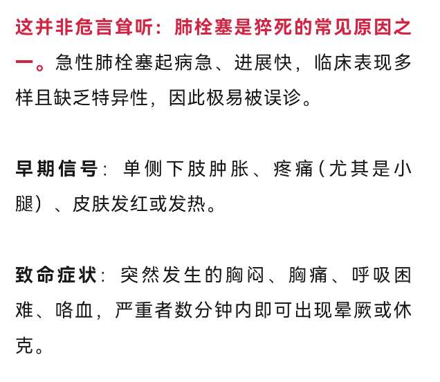 杭州市中医院危重病医学中心主任的张美齐主任提醒:久坐不动+缺水,是血栓的“温床”。很多人以为肺栓塞是老年病,其实不然。