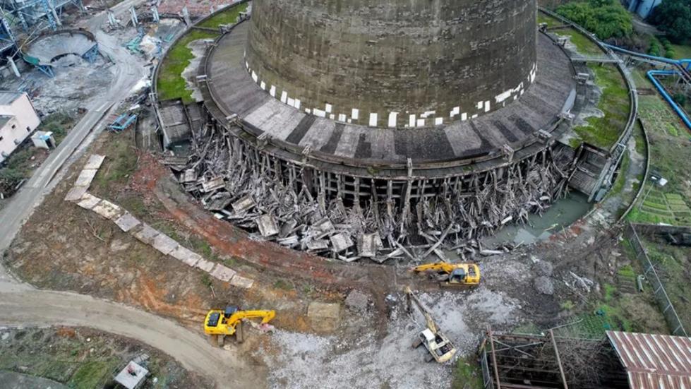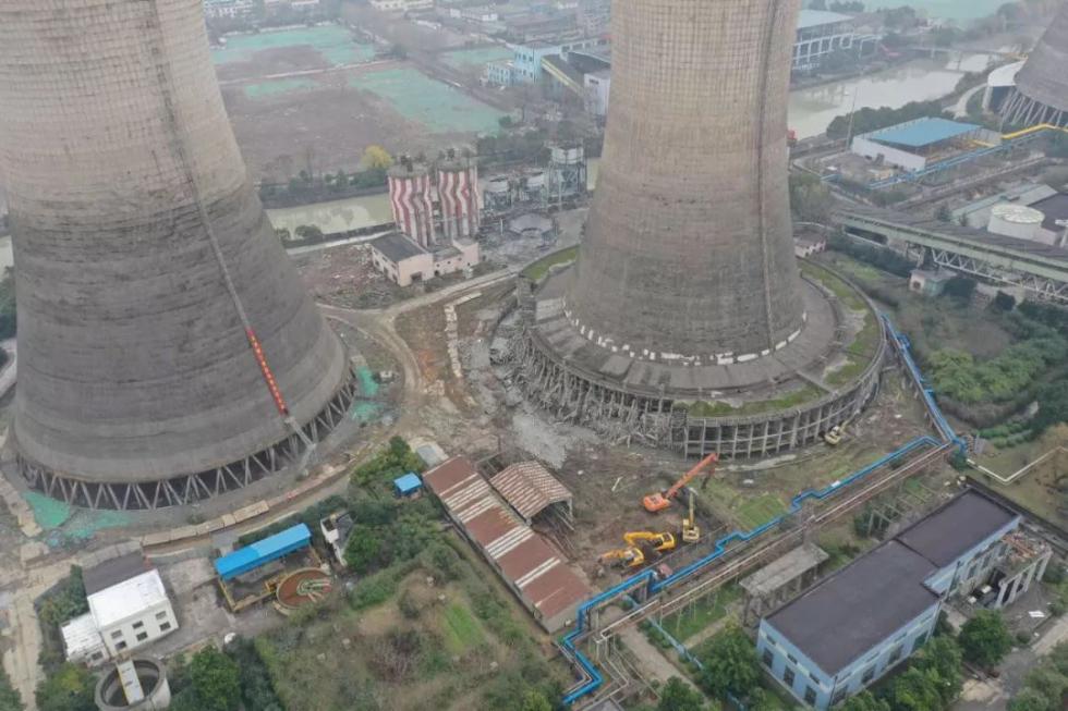 今天实施拆除的5号冷却塔,是半山电厂在五个“擎天柱”中排行“老二”,建成于1995年。