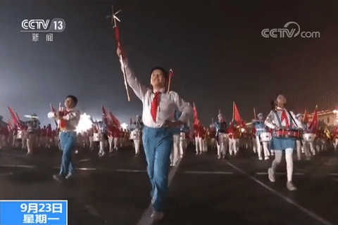 运用直升机编组字样、飞机喷拉彩烟、空地旗帜展示 等形式,寓意在伟大、光荣、正确的中国共产党坚强领导下,新中国建设发展走过的70年辉煌历程,人民军队现代化建设取得的历史性成就。