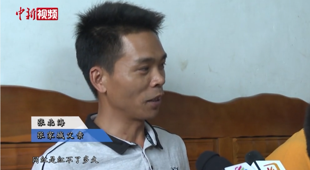 张家城父亲张北海称,“网红是红不了多久,希望他走正规途径,他喜欢打篮球我们都支持的,比如打球需要什么设备或者装备我们都支持,他热爱打球各方面希望他在这条路走下去。”