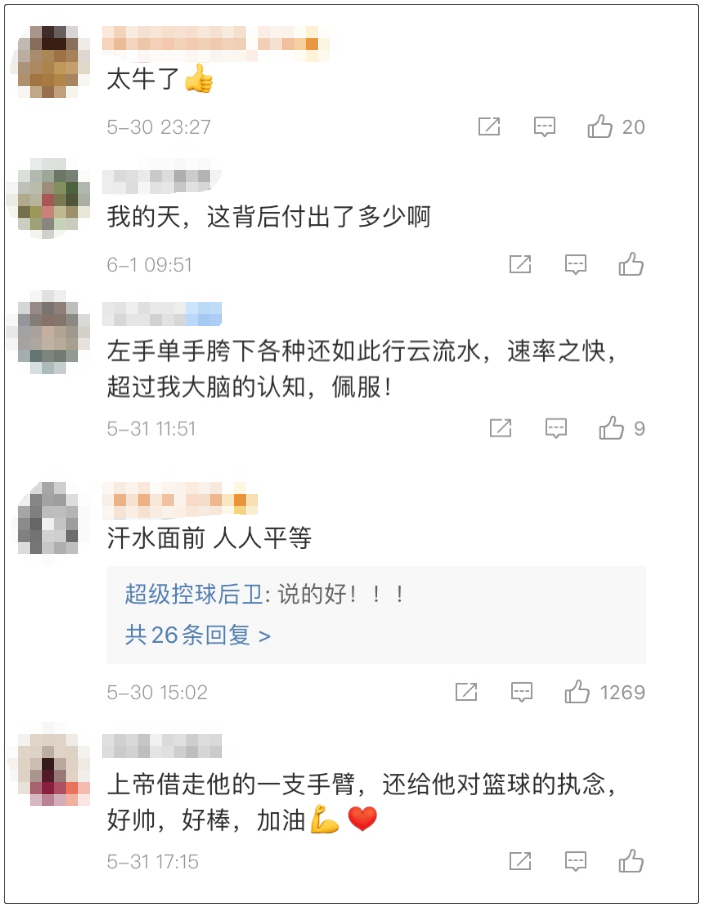 这段视频被很多网友点赞,同时也受到易建联、库里等多位篮球明星的关注。然而,面对突然的走红,这位独臂少年和家人却非常冷静,认为“网红是红不了多久,希望他走正规途径。”