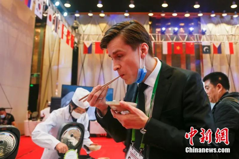 国际大米节上,外国使节在品尝黑龙江大米。中新社记者 吕品 摄