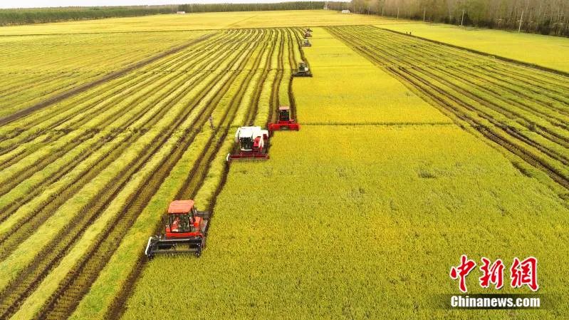 中国北疆,黑龙江的稻田里,从种到收,全程机械化。