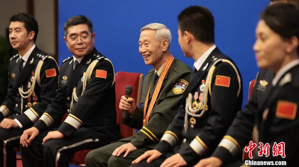 “七一勋章”获得者崔道植(中)出席公安部新闻发布会。郭超凯 摄