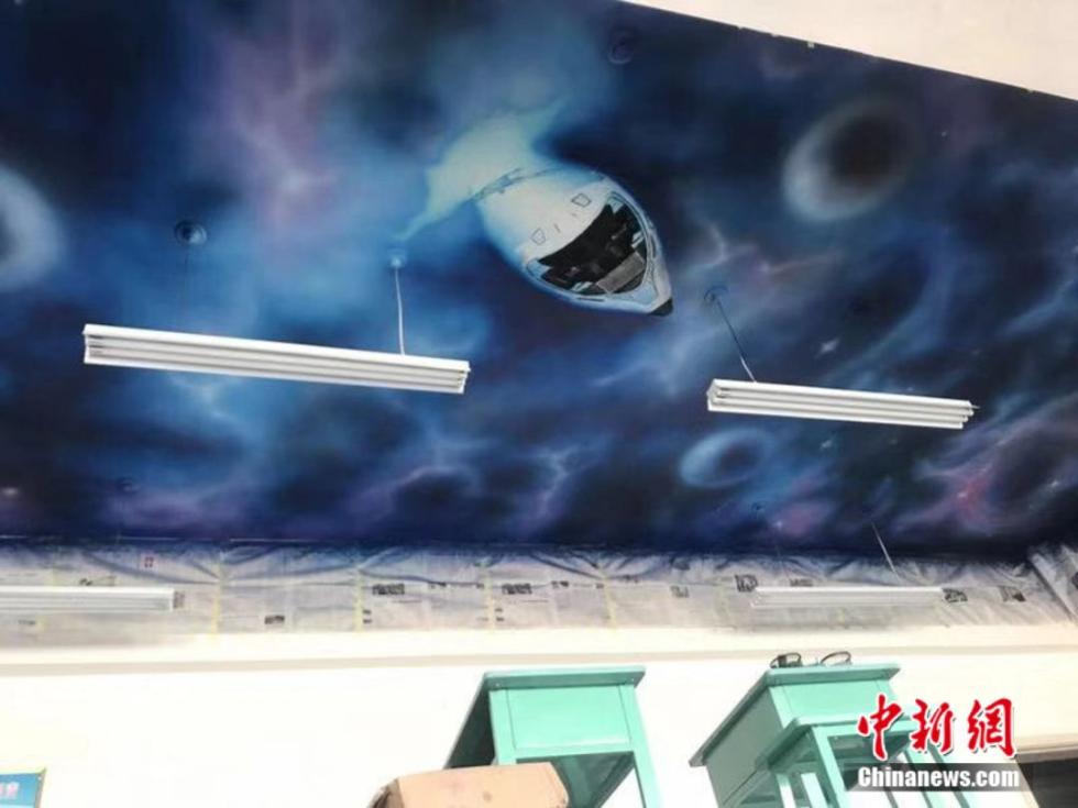 “画的时候就会想着,孩子们会不会喜欢。”赵文瑞说,下课的时候,学生们会偷偷跑进去看这个星空。
