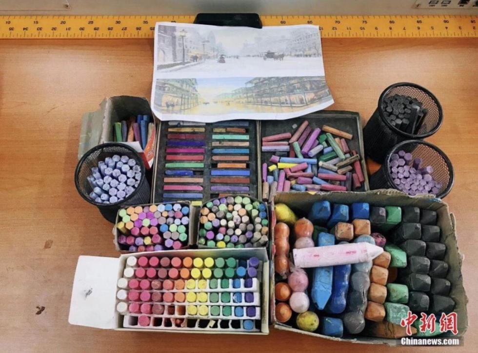 在网络上走红后,有很多网友联系到赵文瑞,给他邮寄了很多不同颜色的粉笔,希望能更方便他作画。“我想把所有适合粉笔画的作品都画一遍,总结出一本粉笔画的校本课程,再教给学生怎么画,希望能从粉笔画中寻找到一些适合教学的创新思路。”
