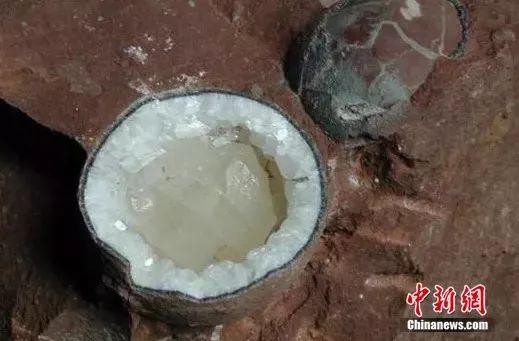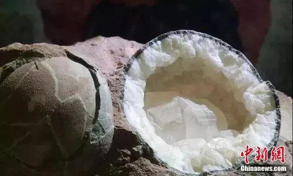 袖珍蛋化石内部有结晶体。河源恐龙博物馆供图