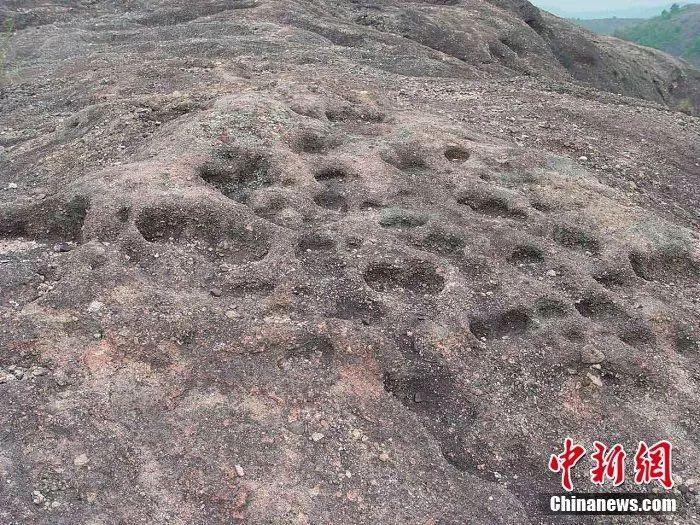 河源恐龙足迹化石是2001年12月发现的,目前已发现8组近200个恐龙足迹化石。来源:河源恐龙博物馆