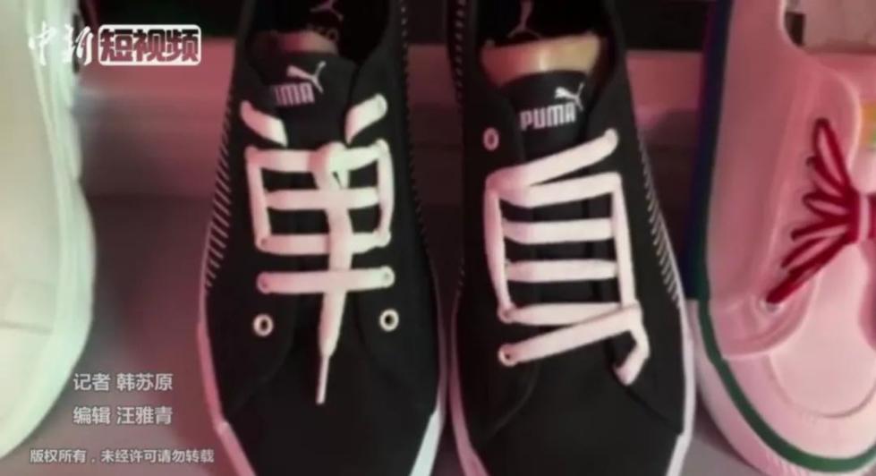 王宏梅说,系一双花式鞋带大约需要1到2分钟。她凭借多年的摸索和学习,用业余时间反复练习花式鞋带系法,深受顾客欢迎。