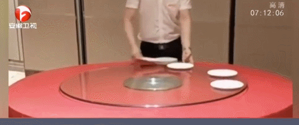 餐饮业从来不缺高手,甘肃天水一家酒楼的高管,练就了一手摆盘的绝活儿,只需将碟子摆在玻璃盘上,轻轻一转,就能摆好一桌的盘子,用时6秒: