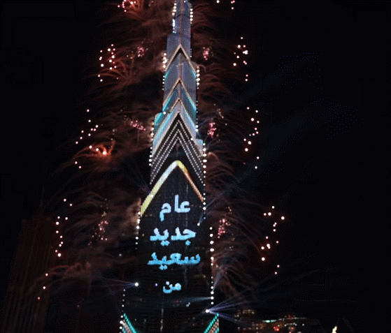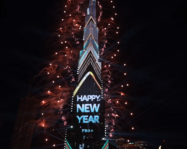 美翻!世界第一高楼上演烟花灯光秀 中英阿语齐祝“新年快乐”