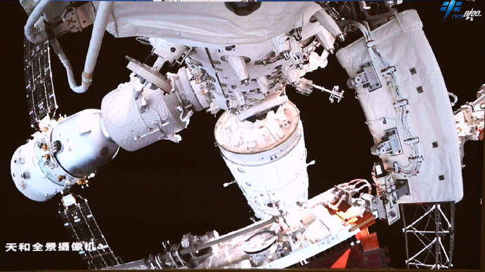 此前,在2022年1月6日,实施了机械臂辅助货运飞船转位试验,这是问天实验舱转位前的一次正式预演,先后完成了机械臂捕获天舟二号、对接机构分离、天舟二号转位、两舱再次对接等一系列预定动作,为本次问天实验舱转位任务的成功实施奠定了坚实基础。