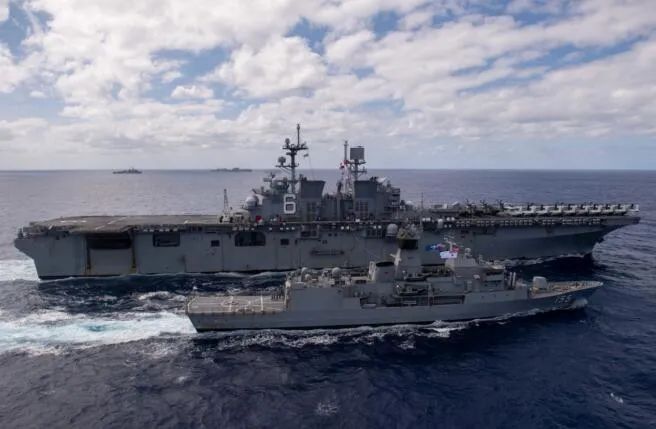 报道称,参加这次演习的各国海上力量包括美国海军的“美国”号两栖攻击舰、“新奥尔良”号两栖运输舰、“日耳曼敦”号船坞登陆舰,澳大利亚的“布里斯班”号防空驱逐舰、“帕拉玛塔”号护卫舰,韩国“王建”号驱逐舰,日本自卫队“卷波”号驱逐舰和加拿大“卡尔加里”号护卫舰。