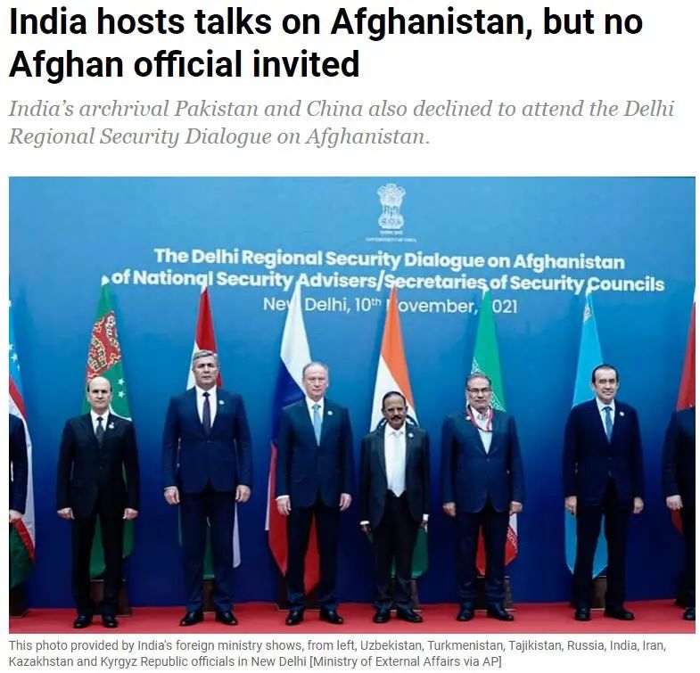 “印度主持阿富汗问题会谈,却未邀请阿富汗官员”,半岛电视台援引印度专家的话说,在新德里举行的会议是“提醒所有人注意印度在阿富汗利益的一种方式”。