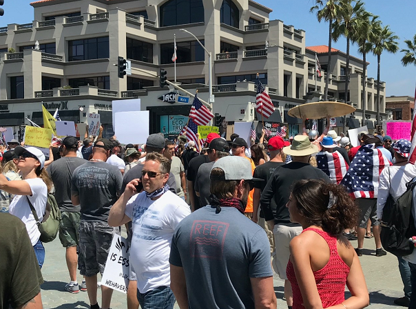 据美国媒体《洛杉矶时报》当地时间5月1日报道,加州州长纽森于周四下达了强制性关闭橙县海滩的行政令,该令已经造成橙县政府官员的强烈反对和当地居民的强烈不满。5月1日当天,更有超过5百人聚集在亨廷顿海滩,抗议纽森的行政令。