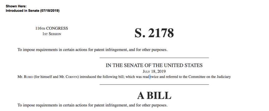△卢比奥提交有关专利的草案 图片来源:美国国会官网