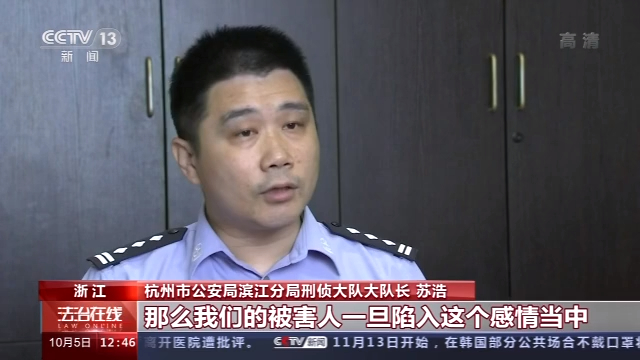 杭州市公安局滨江分局刑侦大队大队长 苏浩: 那么我们的被害人在陷入这个感情当中,她认为对方可能是一个真心投入的一个白马王子,但是实际上犯罪嫌疑人背后是一个团队,在围绕你这个被害人做这个研判。