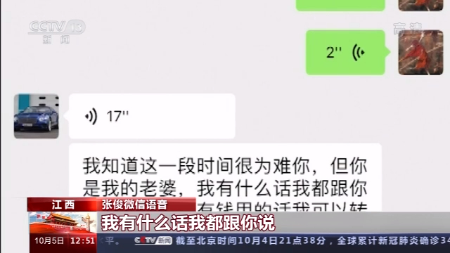 张俊: 我知道这一段时间很为难你,但你是我的老婆,我有什么话我都跟你说,万一你没有钱用的话我可以转给你。