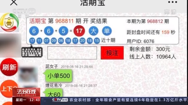 杭州市公安局滨江分局刑侦大队二中队中队长 陈振宇: 其实就是博彩的一个程序,因为它这个房间里面就是只有押大和押小。可能初级房一分钟开一次,高级房三分钟开一次,开了之后你马上就能知道你赢还是输。