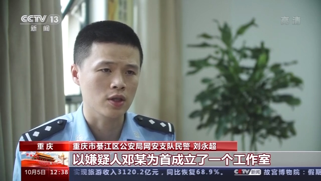 重庆市綦江区公安局网安支队民警 刘永超: 他们在百色市双字塔左塔里租了个房间,里面大概有七八个员工,以嫌疑人邓某为首成立了一个工作室,专门在里面从事网上的诈骗活动。